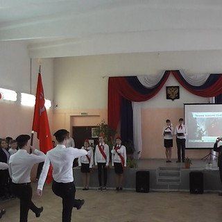 Это событие состоялось в актовом зале нашей школы. Каждый год линейки передачи знамени в нашей школе проходят ярко и интересно. В этом году особое место в сценарии уделено сражениям в ходе Сталинградской битвы, боям за Мамаев Курган, как началу коренного перелома в ходе всей второй мировой войны.